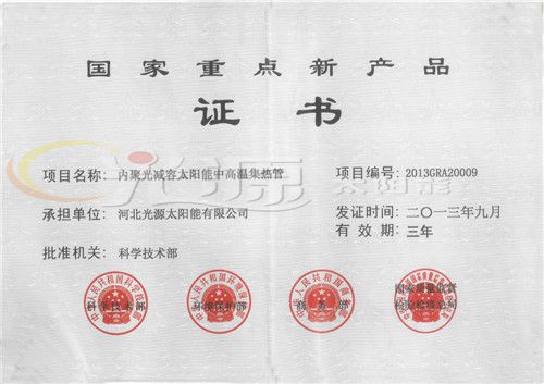 國家重點新產品證書