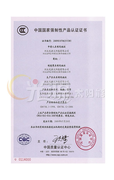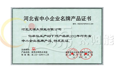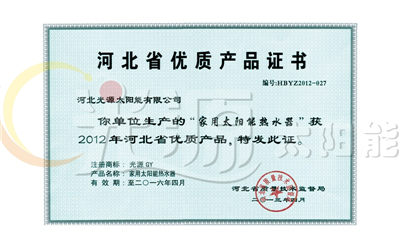 河北省優質產品證書