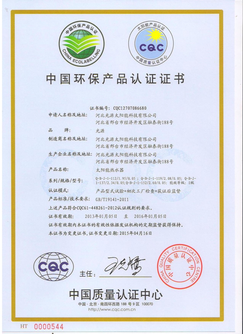 中國環保產品認證證書