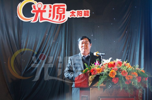 在年會上,中國太陽能熱利用產業聯盟副理事長、中國太陽能熱利用產業協會副理事長、河北光源太陽能科技有限公司董事長李成彬首先致辭。他代表光源公司對各位領導、專家、經銷商朋友的到來表示熱烈歡迎和衷心感謝,對光源2013年取得的成績和2014年發展方向進行了總結和展望。行業領導朱俊生、羅振濤、謝光明、賈鐵鷹、何濤先后講話。在講話中,領導們肯定了光源跨越發展取得的喜人成績,肯定了光源在全國同行業中的地位和作用,對光源未來發展提出了指導性意見。光源公司總經理劉迎波在講話中詳細總結了光源在2013年取得的重大成績。他說,在過去的2013年光源太陽能以強勁的發展勢頭取得了一個又一個令人驕傲的成績。2013年我們的產銷量比去年凈增 16.5%,經銷商數量增長了40%。收獲了中國馳名商標、國家級重點新產品、國家級重點高新技術企業三大國字號榮譽。劉迎波對光源2014年的工作從七個方面進行了闡述。一是,加大營銷和市場建設力度;二是,加大招商促銷力度;三是,加大廣告支持力度;四是,加大工程市場開發力度;五是,進一步加大產品質量監管力度;六是,進一步加大對經銷商扶持力度;七是,加大新產品研發力度。劉迎波最后說,光源太陽能產業園的開業盛典,拉開了光源太陽能跨越發展的新一幕,讓我們齊心協力,眾志成城,策馬揚鞭,共筑美好未來!