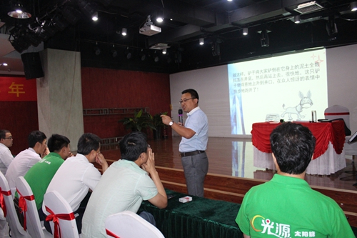 6月份,光源太陽能科技有限公司舉辦的銷售培訓(xùn)會(huì),通過培訓(xùn)會(huì),不但可以加深業(yè)務(wù)人員對(duì)企業(yè)文化和產(chǎn)品的認(rèn)識(shí),而且能夠增強(qiáng)業(yè)務(wù)人員的專業(yè)知識(shí)及技能,更好的服務(wù)于客戶.