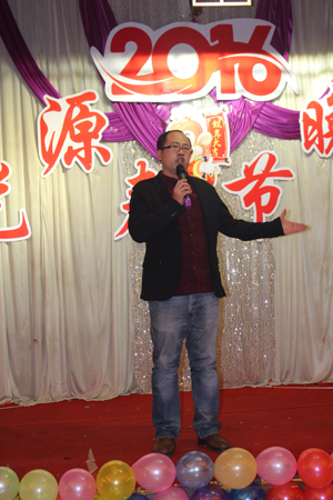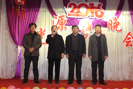 晚會開始前,董事長李成彬首先致辭。在致辭中,李成彬向全體員工恭賀新春,對2015年工作進行了回顧,對2016年工作進行了展望和描繪。接著,公司領導李成彬、劉迎波、邵東坤、李友民一起上臺向大家拜年。公司各部門經理一起上臺給大家拜年。恭祝大家新年快樂,猴年大吉,闔家歡樂,萬事如意。