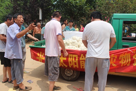 根據開發區管委會統一安排,轄區內企業對受災村民在生活上進行對口支援。光源太陽能公司與其他幾家企業支援景家屯村。其中光源公司為景家屯300名村民提供一日三餐,解決300口人的生活問題。