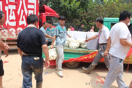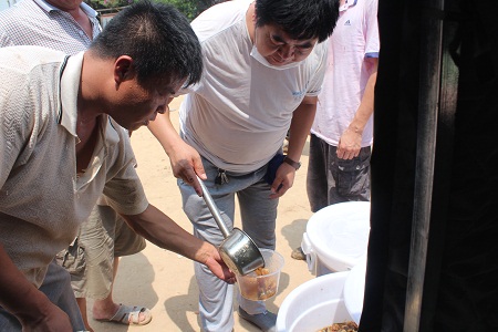 7月25日,是對口支援的第一天。光源公司職工食堂的炊事人員4點鐘起床到菜市場進行采購,8點鐘將早飯準時送到景家屯村。中午12時許,又將午飯準時送到村里。村民們排隊打飯,一邊吃著白面饅頭,喝著香噴噴的大鍋菜,一邊夸贊光源公司飯菜做得香甜可口。他們說,幾天了,終于吃上了熱乎飯,感謝光源公司,感謝政府領導。