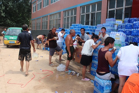 邢臺經濟開發區東汪鎮景家屯村,是邢臺7.19洪水侵襲的重點村之一。從7月19日晚斷電斷水至今,水電供應因施工難度大,至今仍未恢復。村民一日三餐,僅以礦泉水、方便面(干吃)充饑。