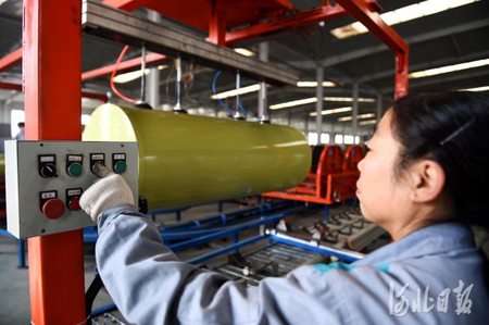 11月10日,河北光源太陽能科技有限公司工人在蓄熱式智能電鍋爐生產(chǎn)線上忙碌。