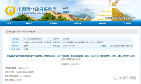 內(nèi)丘縣2019年度清潔取暖【空氣源熱泵、熱風(fēng)機(jī)1拖2、遠(yuǎn)紅外取暖器、蓄熱式電暖器(固體、液體)】采購(gòu)項(xiàng)目入圍項(xiàng)目中標(biāo)公告出爐,河北光源太陽(yáng)能科技有限公司憑借強(qiáng)大的品牌實(shí)力、過硬的產(chǎn)品質(zhì)量以及親民的售后服務(wù)榮登榜單。入圍產(chǎn)品為:蓄熱式電暖器(液態(tài))。