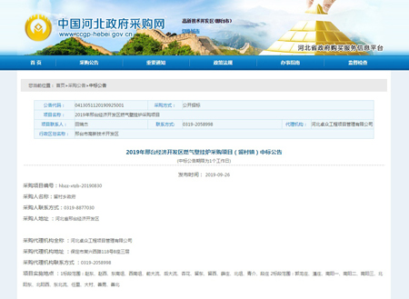 中標(biāo)2019年邢臺(tái)經(jīng)濟(jì)開(kāi)發(fā)區(qū)燃?xì)獗趻鞝t采購(gòu)項(xiàng)目(留村鎮(zhèn))!![]()