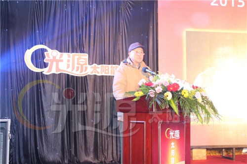 首先,12月6日上午9:30,光源年會隆重開幕。在年會上,中國太陽能熱利用產業聯盟副理事長、中國太陽能熱利用產業協會副理事長、河北光源太陽能科技有限公司董事長李成彬致辭。他代表光源公司對各位領導、專家、經銷商朋友的到來表示熱烈歡迎和衷心感謝,對光源2014年取得的成績和2015年發展方向進行了總結和展望。李成彬指出,2014年是光源發展史上不平凡的一年,在國內經濟增速放緩的大背景下,太陽能光熱行業也受到極大影響。但光源勇敢拼搏、堅定信念,以市場為導向,以銷售為龍頭,產量雖然相比去年有所下滑,然而,我們依然對太陽能光熱行業的發展前景充滿信心,相信太陽能光熱的春天一定還會到來。行業領導羅振濤、霍志臣、張曉黎、賈鐵鷹、楊桂元先后講話。在講話中,領導們肯定了光源跨越發展、科技創新取得的喜人成績,肯定了光源在全國同行業中的地位和作用,對光源未來發展提出了指導性意見。光源公司總經理劉迎波在講話中詳細分析了光源公司面對的市場形勢,他說,光源公司在今后的發展道路上要審時度勢,及時調整經營戰略和營銷政策,做精做細終端市場,和廣大經銷商一起,打造符合光源特點的企業發展之路。