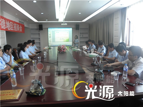 河北光源太陽能有限公司創立于1986年,是國內研制、生產太陽能熱水器的最早廠家之一。近三十年的發展歷程中,光源秉承可持續發展的理念,一次次創新,一次次進步,處處展現光源人求發展,知進取的精神。光源太陽能多項技術獲得國家專利標號,2012年光源太陽能被國家工商總局認定為“中國馳名商標”。本次光源太陽能承德寬城招商會場設立于當地生態商務賓館,地勢逢高,俯瞰寬城潔凈而秀美,雖為北方城鎮,更有南方的清新與亮麗。招商會場氣氛熱烈而不乏嚴肅,各經銷商認真聆聽市場部經理侯利佳對我司的介紹,并仔細研讀著本次招商的政策。本次招商會,我司及當地中轉庫一致嚴格遵守保護市場有序競爭的原則,寧缺毋濫尋找優質誠信的經銷商,短暫也能的半小時訂貨時間,我司在寬城開設銷售網點近十家,基本覆蓋寬城所屬鄉鎮。本次招商為我光源太陽能事業在承德當地及全國市場的發展與開拓都起到了非常重要的意義。