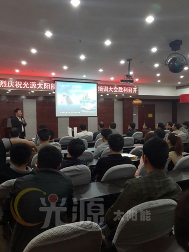 為加強公司與經銷商之間的溝通,幫助經銷商熟悉并掌握公司概況、產品知識、促銷技巧及售后服務知識,河北光源太陽能科技有限公司2014廠商共贏睿智創富峰會于2014年4月17日晚在山西侯馬市怡鑫大酒店隆重開幕,本次峰會匯集來自運城、河津及臨汾三大城市經銷商,到會100余人。