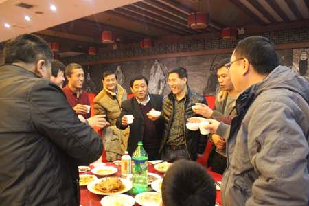 晚會結束后,春節晚宴開始。董事長李成彬、總經理劉迎波與公司領導來到員工中間,向員工敬酒,祝賀新年。